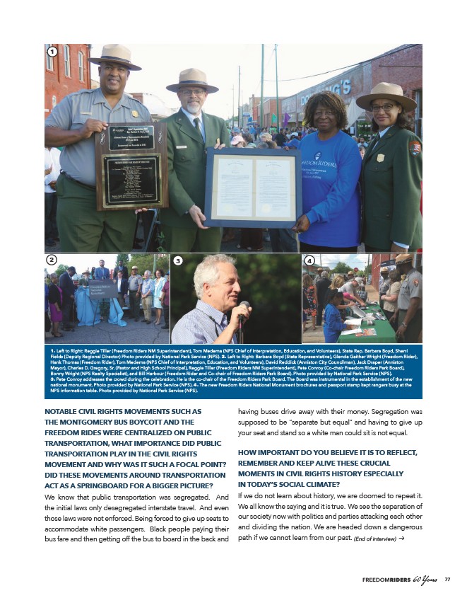 Fields (Deputy Regional Director) Photo provided by National Park Service (NPS). 2. Left to Right: Barbara Boyd (State Representative), Glenda Gaither Wright (Freedom Rider),