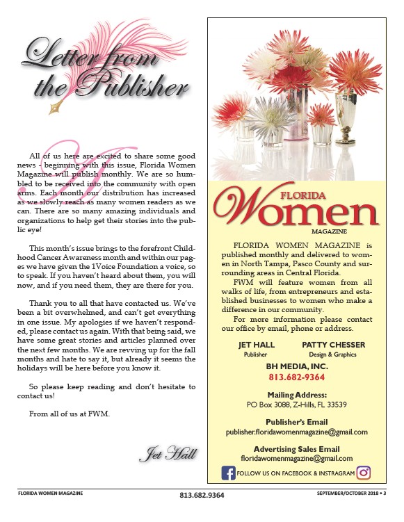FLORIDA WOMEN MAGAZINE 813.682.9364 SEPTEMBER/OCTOBER 2018 • 3