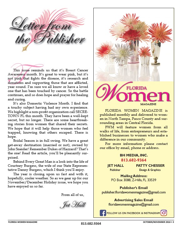 FLORIDA WOMEN MAGAZINE 813.682.9364 OCTOBER/NOVEMBER 2018 • 3