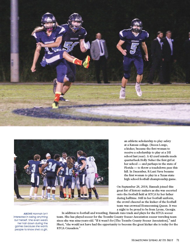 In addition to football and wrestling, Hannah runs track and plays for the RTCA soccer
