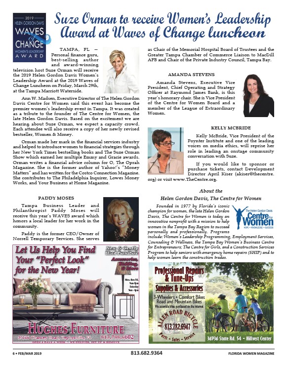 • Sales • 6 • FEB/MAR 2019 813.682.9364 FLORIDA WOMEN MAGAZINE