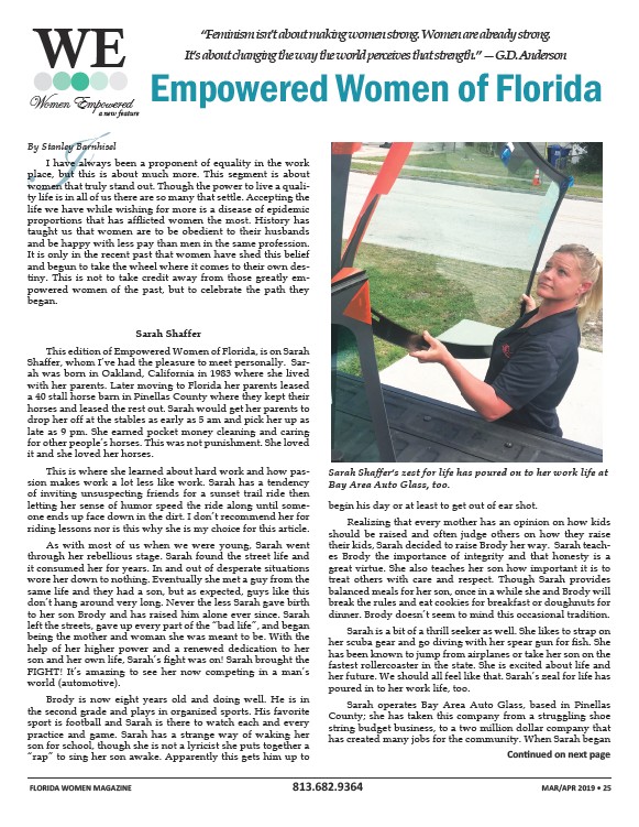 Sarah operates Bay Area Auto Glass, based in Pinellas