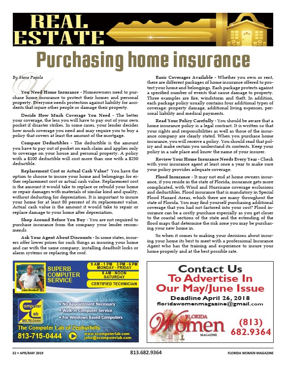 32 • APR/MAY 2019 813.682.9364 FLORIDA WOMEN MAGAZINE