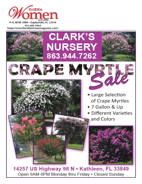 W omen FLORIDA MAGAZINE P. O. BOX 3088 • Zephyrhills, FL 33539 813.682.9364 CLARK’S NURSERY 863.944.7262 SaleSale 14257 US Highway 98 N • Kathleen, FL 33849 Open 9AM-6PM Monday thru Friday • Closed Sunday
