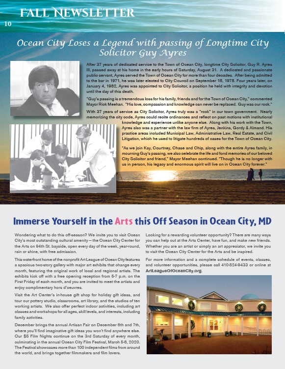 public servant, Ayres served the Town of Ocean City for more than four decades. After being admitted
