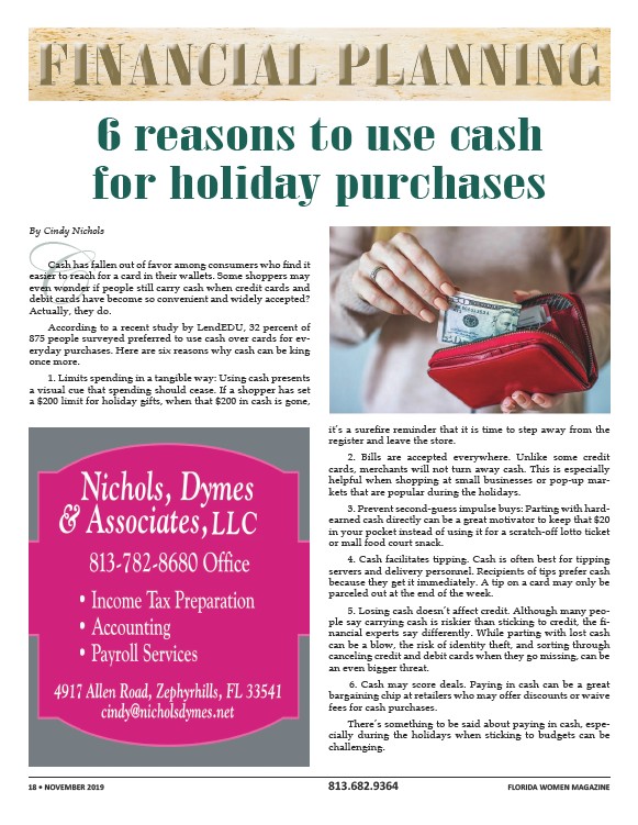 18 • NOVEMBER 2019 813.682.9364 FLORIDA WOMEN MAGAZINE