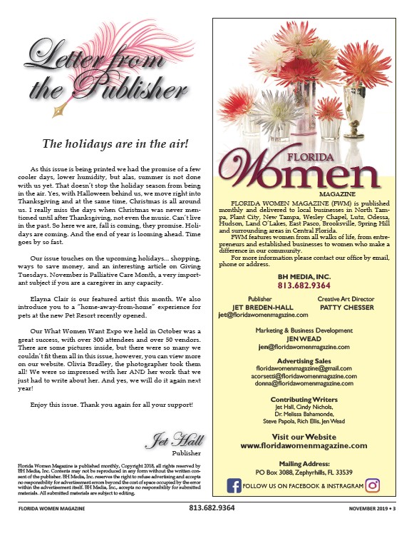 FLORIDA WOMEN MAGAZINE 813.682.9364 NOVEMBER 2019 • 3