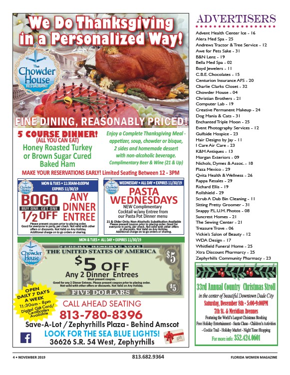 4 • NOVEMBER 2019 813.682.9364 FLORIDA WOMEN MAGAZINE