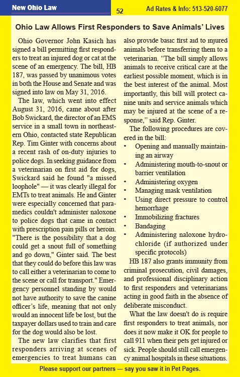 Ohio Law Allows First Responders to Save Animals’ Lives