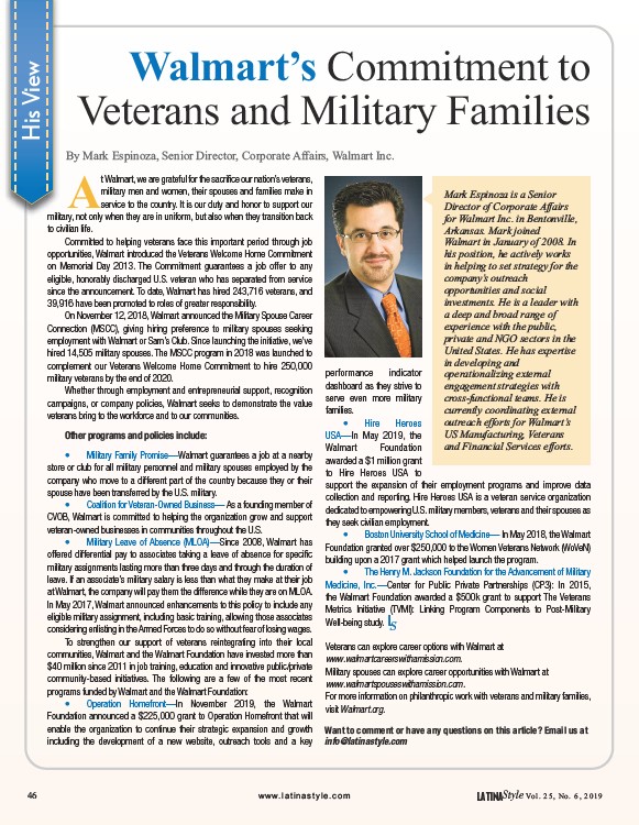 since the announcement. To date, Walmart has hired 243,716 veterans, and