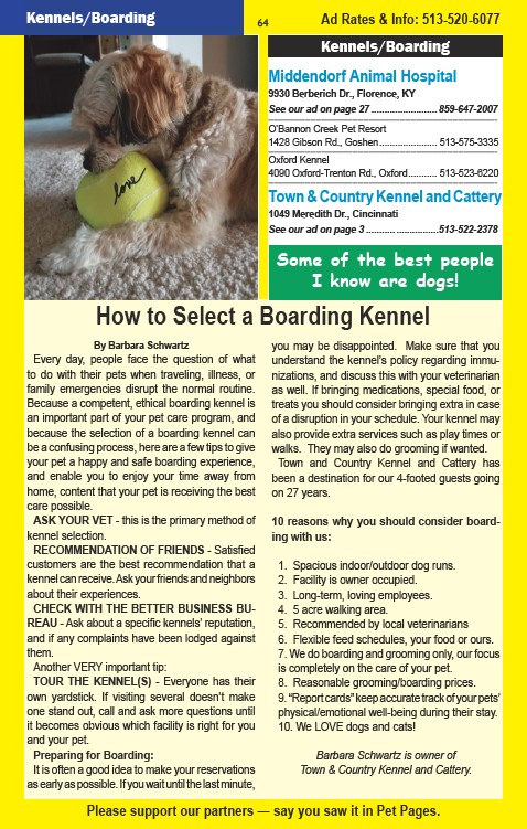 kennel can receive. Ask your friends and neighbors