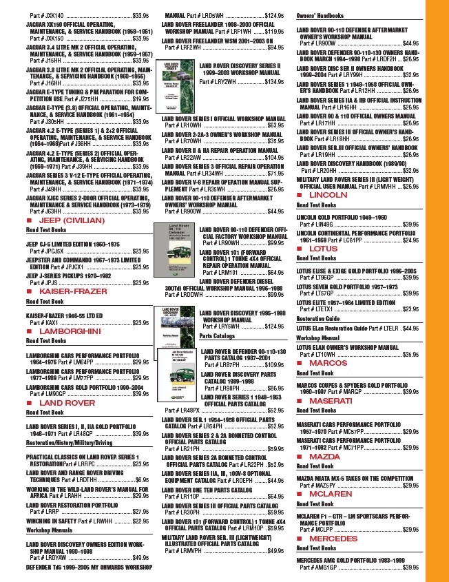 WORKSHOP MANUAL Part # LRF1WH ....... $119.95