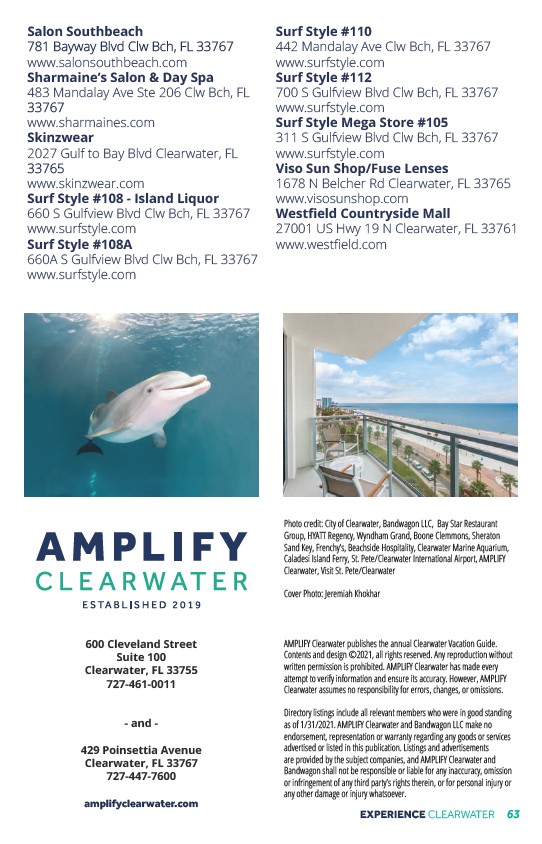AMPLIFY Clearwater publishes the annual Clearwater Vacation Guide.