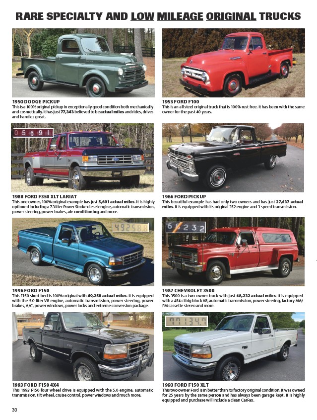 RARE SPECIALTY AND LOW MILEAGE ORIGINAL TRUCKS
