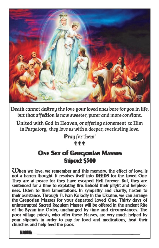 the Gregorian Masses for your departed Loved One. Thirty days of