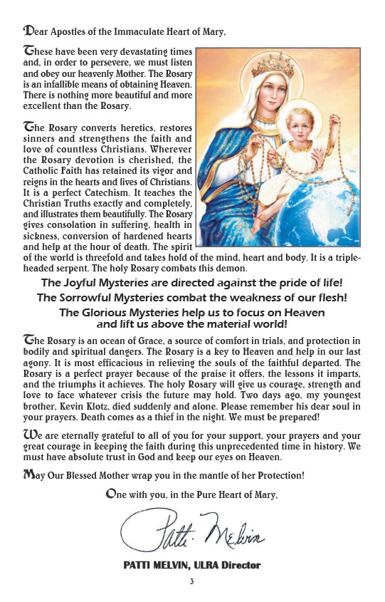 bodily and spiritual dangers. The Rosary is a key to Heaven and help in our last