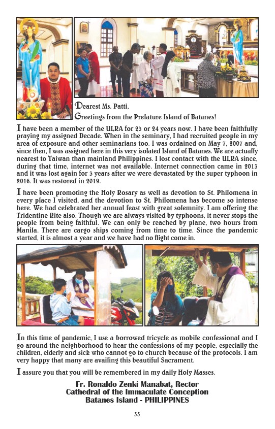 I have been promoting the Holy Rosary as well as devotion to St. Philomena in