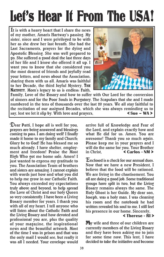 Family, Love of the Rosary and how to suffer with Our Lord for the conversion