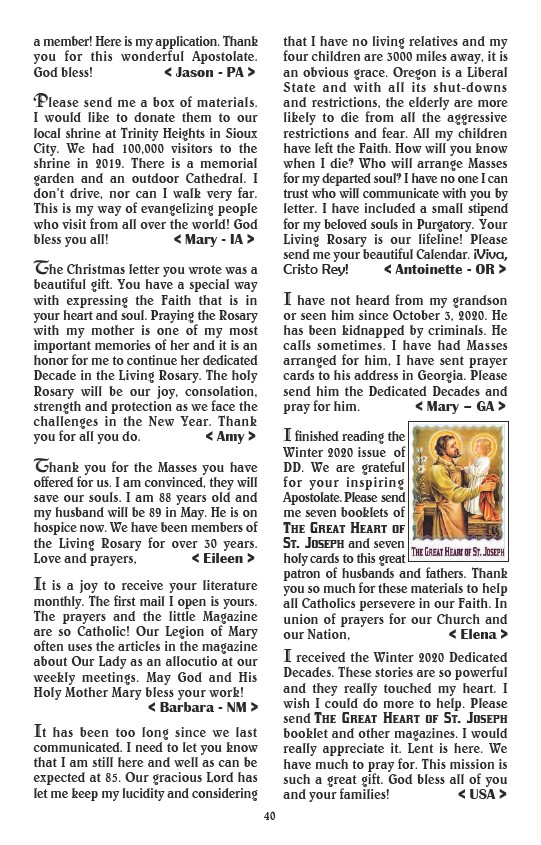 our Nation, < Elena > I received the Winter 2020 Dedicated