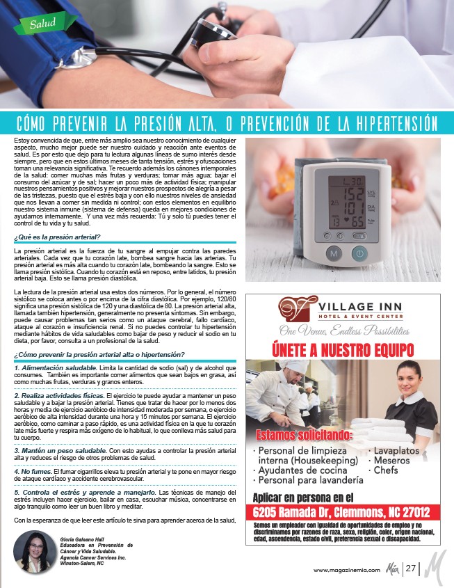 ¿Cómo prevenir la presión arterial alta o hipertensión?
