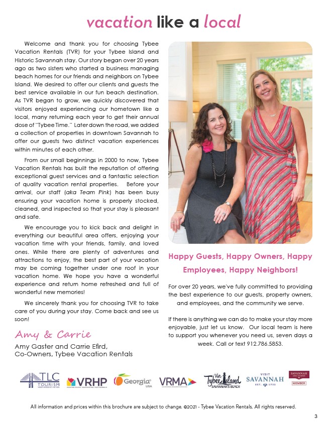 All information and prices within this brochure are subject to change. ©2021 - Tybee Vacation Rentals. All rights reserved.