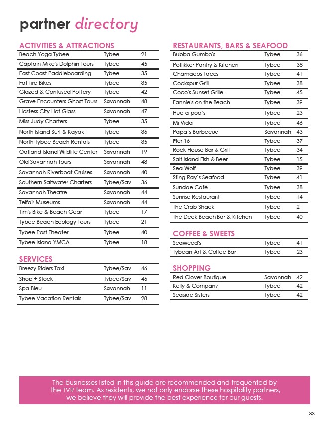 the TVR team. As residents, we not only endorse these hospitality partners,